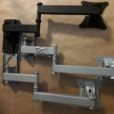 Väggfäste till tv. Mycket stabilt och smidigt om du behöver vinkla tv:n åt olika håll. Jag har haft en tv på 55 tum uppsatt, men den klarar både större och mindre tum. Nu flyttar jag och behöver den inte längre.