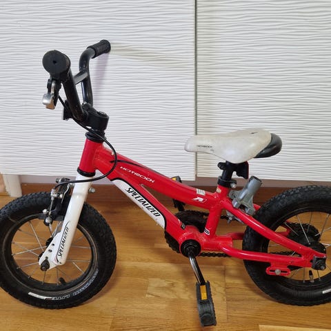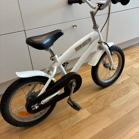 Barncykel med hjulstorlek 12 tum i färgerna vit och lila. Utrustad med kedjeskydd, reflexer och sadel med låg instegshöjd som passar mindre barn. Lämplig som första cykel eller för barn som ska lära sig att cykla självständigt. Fotbroms.
