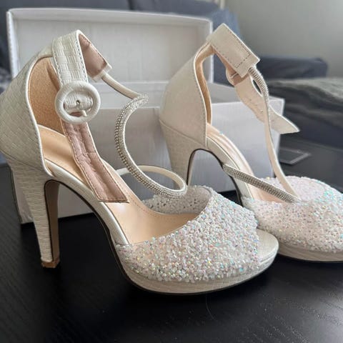 Säljer mina vackra bröllopsskor då jag valde ett annat par till den stora dagen. Skorna är helt oanvända utomhus och endast provade hemma för att träna att gå i dem. De är alltså i nyskick utan märken eller slitage.