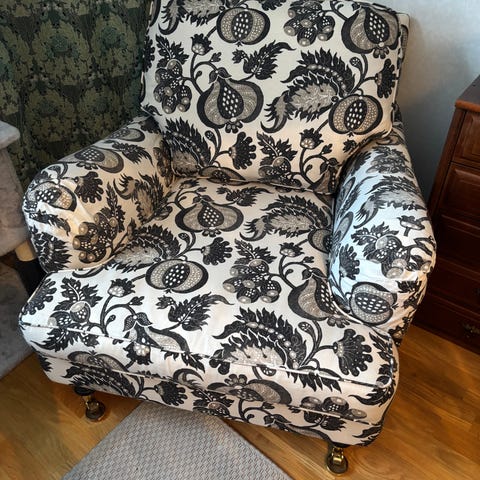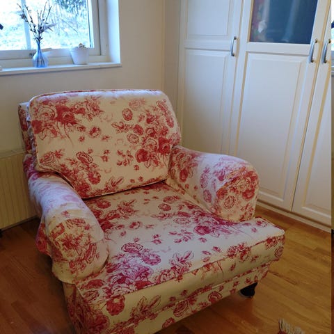 I samband med ompolstringen har även skum samt delar av fjädringen bytts ut, vilket gör stolen både stabil och mycket bekväm att sitta i.