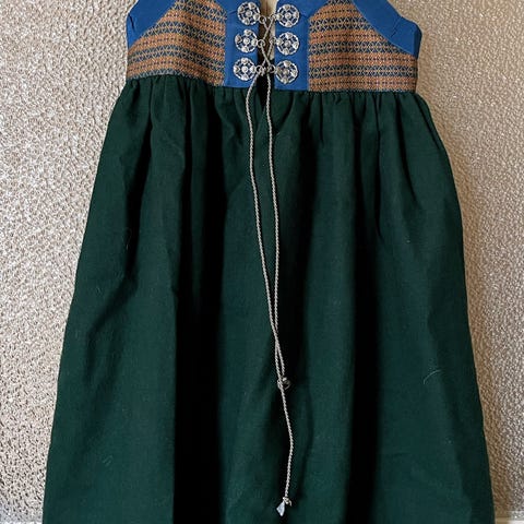 Jag säljer en klänning från Marimekko, designer Iloinen Takki, "Glada Rocken", storlek 140, i fint använt skick!