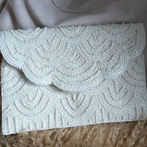 Jag säljer en väska, clutch från Odd Molly 2011, i fint använt skick! Mörkrosa, mocka, blommor.
