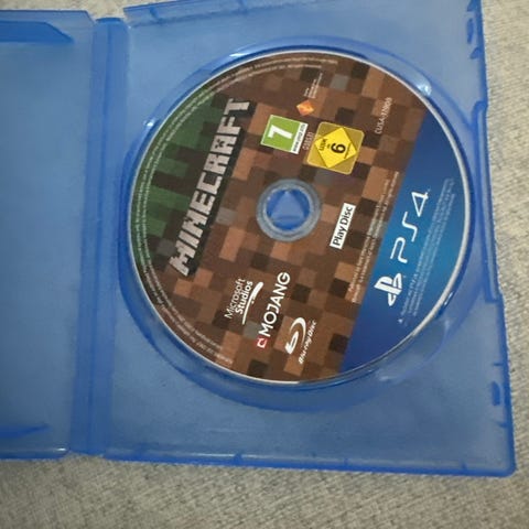Mojang Minecraft spel för Playstation 4. Fysisk utgåva på skiva i blå PS4-fodral. Spelet är PEGI 7-märkt. Avsett för spelare som vill bygga, utforska och överleva i en blockbaserad värld i både enspelarläge och flerspelarläge beroende på konsolens inställningar och tillgång till nätverkstjänster.