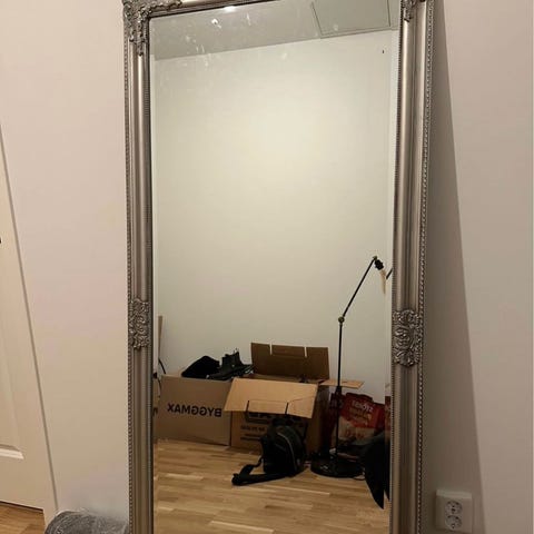 Spegel, fyrkantig och väldigt snygg. Spegeln är tung. Snygg att tex ha ståendes på golvet med några tavlor som inredning.