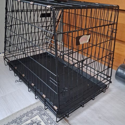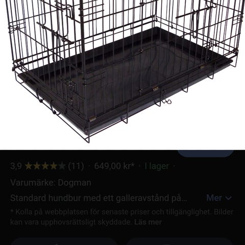 Hundbur Dogman längd 75 x 45 cm med dyna, höjd 55 cm. Buren går att vika ihop. Då blir den platt och bärs smidigt som en portfölj. Hunden bör då inte ligga inuti.
