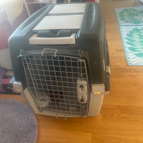 Transportbur för valp/mindre hund. Storlek M, 60x42x42 cm. Endast använd fåtal gånger av rumsren hund.