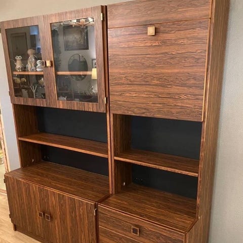 Äldre möbel i ok beg skick. Barskåp med belysning. Skåp nedtill. Mindre slitage finns nedtill, se bilder.