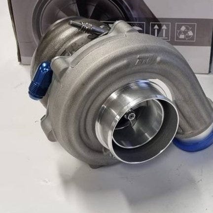 Turbon monteras nedåt med T3 fläns och grenröret har ett uttag för 38, eller 35mm wastegate av Pulsar, Tial typ. CC-Mått mellan skruvhålen för wastegaten är 71mm.