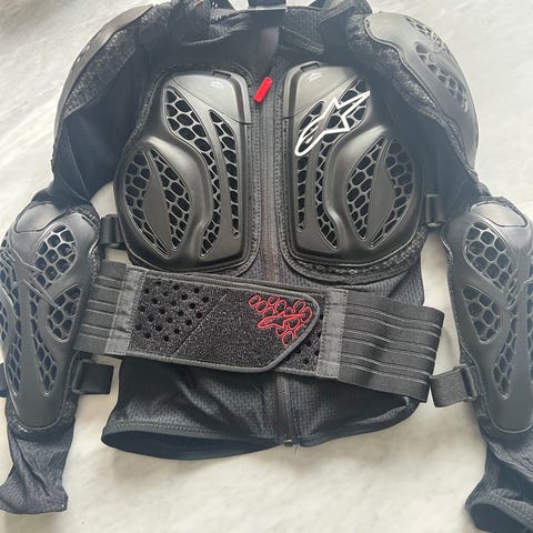 Alpinestars tech 5 storlek 44,5 i begagnat skick, Alpinestars byxa 36, tröja L i nyskick, Fox hjälm storlek M 58, samt fox handskar. Säljes i paket för 2800kr.