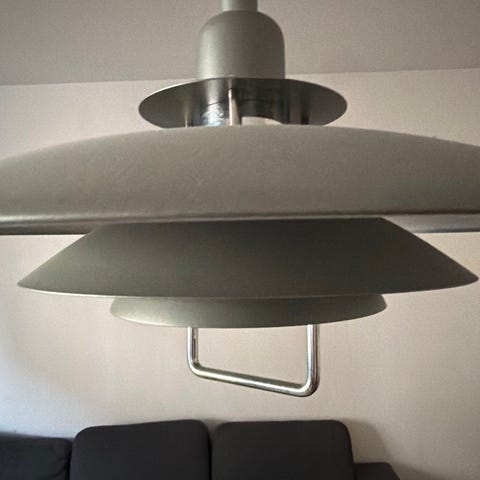 Mio Aage Petersen taklampa med skärm i rökfärgat glas. Lampan har en diameter på 40 cm och väger cirka 1,68 kg. Utrustad med E27-sockel och är avsedd för ljuskälla med maxeffekt 40 W. Klassad enligt IP20, vilket innebär att den är avsedd för torra inomhusmiljöer. Passar exempelvis över matbord, i vardagsrum eller hall där en dekorativ glaskupa önskas.