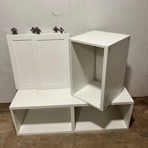 Skåp med 2 dörrar, 1 hyllplan. Står på låga Bestå fötter.