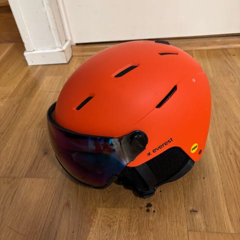 Perfekt i för sportlovet. Skidhjälm (ej Mips) från Stadium Everest i storlek S/M (54–57 cm) i orange förs skidåkning, pulka eller skridskor.