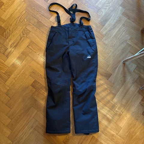 Bergans Kjerag skalbyxor i storlek XL. Byxorna är svarta och utrustade med RECCO lavinräddningsreflektor. De har hängslen, flera fickor med dragkedja och förstärkningar vid bensluten. Materialet är ett tekniskt skaltyg som är anpassat för utomhusaktiviteter som skidåkning och fjäll- eller vinterbruk.