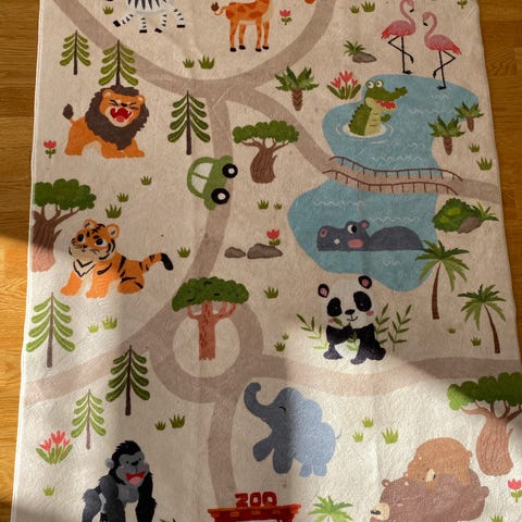 1) Multi-färgad lekmatta med bilvägar, rondeller, hus etc "Lekplats" storlek 133x140cm - 50kr