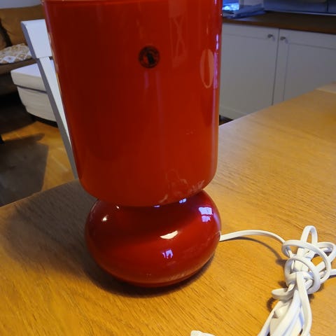 Lampan ger ett varmt, mjukt sken och har en tydlig retro pop‑art‑känsla som gör den perfekt som sänglampa, dekorationslampa eller samlarobjekt.