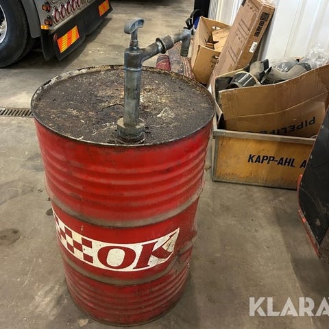 Ca 400 liter eldningsolja. Lätt att samla upp oljan direkt från tanken