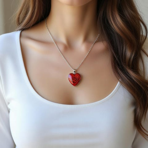 Snyggt halsband med silverfärgad kedja och ett hjärtformat hänge med glasöverdrag. Hänget har ett motiv av grenar och orange höstlöv mot ljus bakgrund. Kedja 55 + 5 cm. Berlock 2,5 × 2,5 cm. Perfekt accessoar för dig som gillar naturinspirerade smycken.