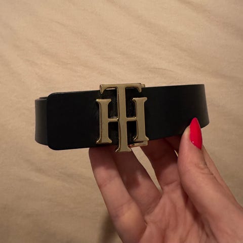 Ralph Lauren RLL bälte för kvinna. Bältet är svart med slät yta och ton-i-ton-sömmar längs kanterna. Spännet är i metall med RLL-logotyp i guldfärg. Flera hål för justerbar passform. Passar till exempelvis byxor, kjolar eller klänningar där ett smalare läderbälte önskas. Bältet är 110cm lång och 2,3cm bred med 10 hål för justering av bältet.