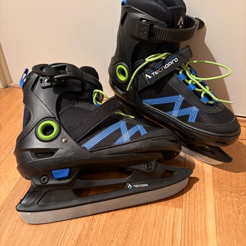 Performance skridskor för barn i storlek 33–36. Storleken är justerbar med hjälp av en låsknapp. Hårt ytterskal med spänne och kardborre och väl isolerade (varma).