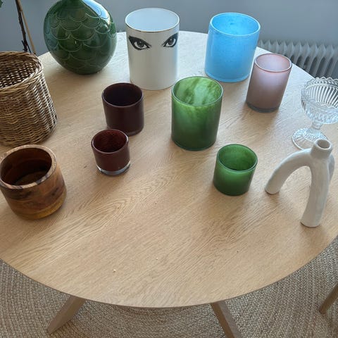 Ljuslyktor i tonat gråblått glas, 9 1/2 cm i diameter. Passar för värmeljus eller små blockljus och kan användas som dekoration på bord, hylla eller fönsterbräda.