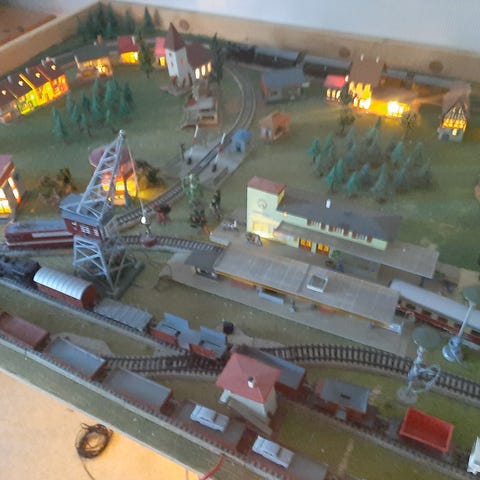 Modelltåg tillbehör spår räls bro tunnlar hus vagnar