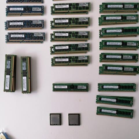 Blandade RAM-minnen för dator. Flera olika moduler och formfaktorer syns på bilderna, både lösa och i förpackning. Lämpliga som reservdelar eller uppgradering av kompatibla stationära datorer och servrar. Om du vill veta exakta kapaciteter eller annan info skriv gärna.