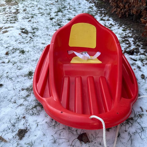 Rött tefat (pulka). Använd men robust. 60 cm i diameter