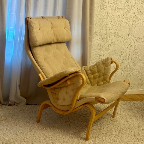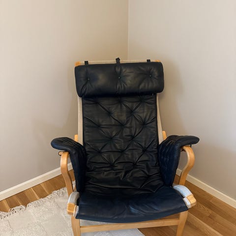 Bruno Mathssons Pernilla 69 fåtölj I svart skinn utan skador och skinnet i fint skick.