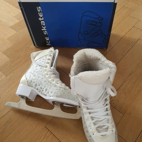 Vita skridskor, storlek 36, från Stadium i mycket bra skick förutom snörena.