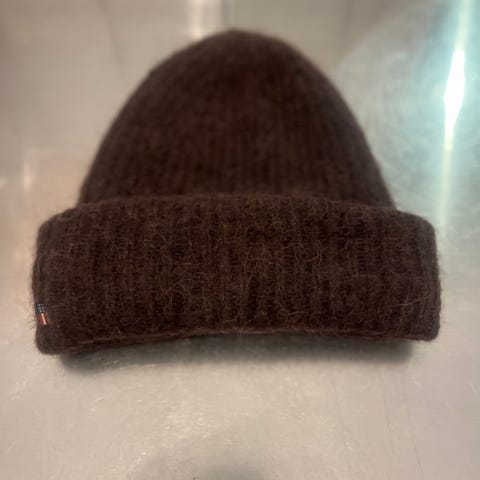 H&M mössa för dam i brun färg. Storlek one size. Klassisk modell med uppvikt kant som ger extra värme runt öronen. Passar för vardagsbruk under kallare väder.