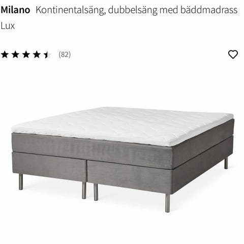 Mio kontinentalsäng utan bäddmadrass i grått tyg. I bra beg skick.