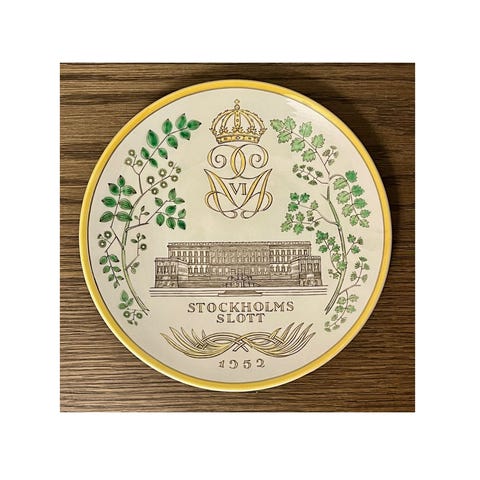 Material: Metall, ofta mässingsfärgad med emaljerade detaljer.
