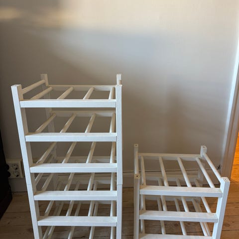 Bågformad ovandel och dekorativa svängda detaljer i sidor och nederkant. Passar för förvaring av vinflaskor stående på golv eller på bänk i kök/vardagsrum.