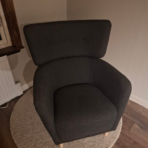 IKEA fåtölj med fotpall mörkgrå tyg