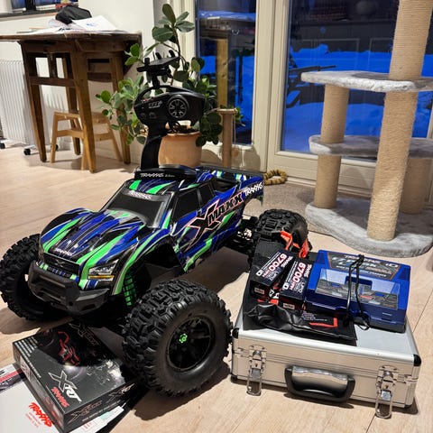 Traxxas Bigfoot 50 Years radiostyrd bil 4x4. Modellen är en monstertruck i jubileumsutförande med Bigfoot 50 Years-dekor. I paketet ingår radiokontroll, två Traxxas LiPo-batterier på 3000 mAh samt laddare.