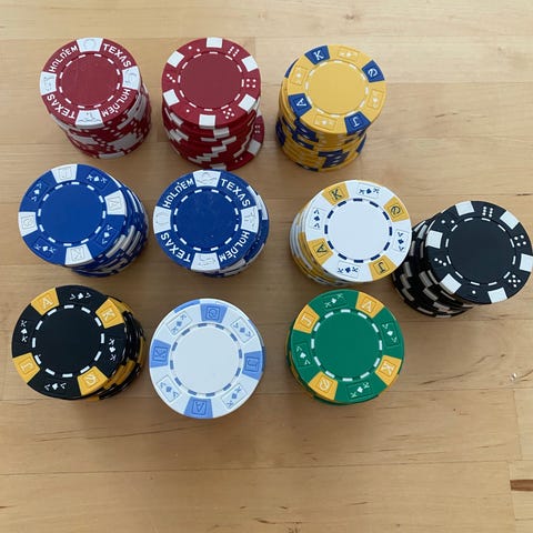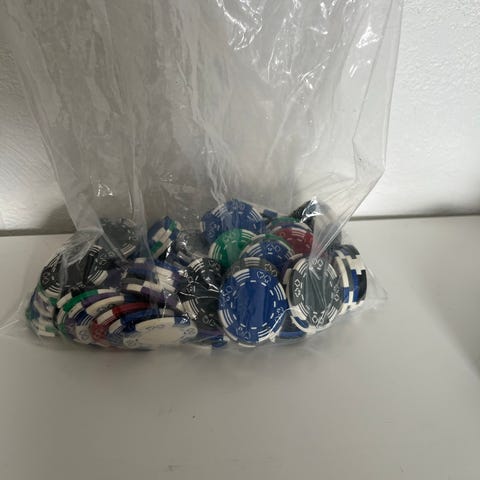 Pokerset med marker och 5 tärningar i väska nyckel saknas ( ej komplett )
