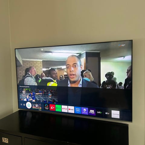Samsung TV för väggmontering. Platt skärm med tunn profil, lämplig för vardagsrum eller andra utrymmen där en väggmonterad lösning önskas. Väggfäste ingår, ej prutmån.