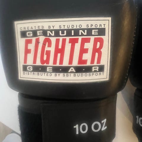 Fighter MMA-handskar i storlek small. Handskarna är svart/orange med öppna fingrar och vadderad ovansida. Justerbar stängning runt handleden. Passar för MMA, sparring och annan kampsportsträning där greppförmåga behövs.