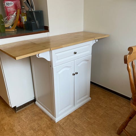 Vit underdel och svart marmorerad skiva.