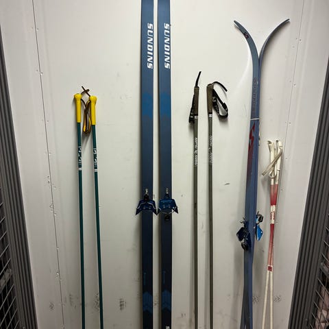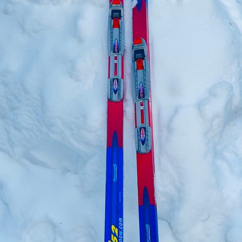 Völkl Cup 800 Mikro Schuppe längdskidor med bindningar. Skidorna har fiskfjällzon (Mikro Schuppe) för fäste utan fästvalla. Utrustade med Salomon 55-bindningar. Färg främst grå och blå. Passar för klassisk längdskidåkning.