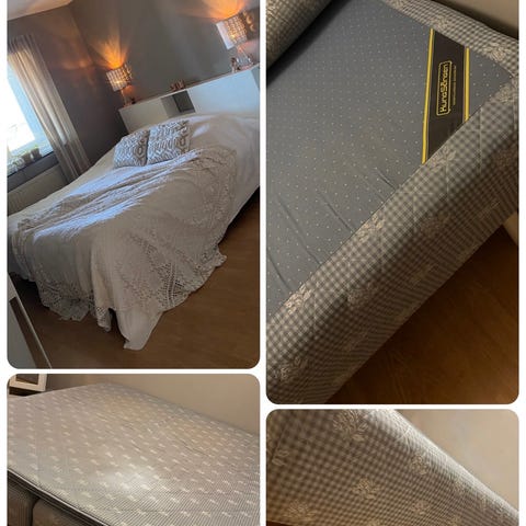 Denna kontinetalsäng är inköpt på Mio 2023 för över 7000kr med alla madrasser och madrassskydd. Just nu är den utan ben och höjden är 50 cm. Fästena för benen är skruvfästen så det finns många ben man kan skruva dit.