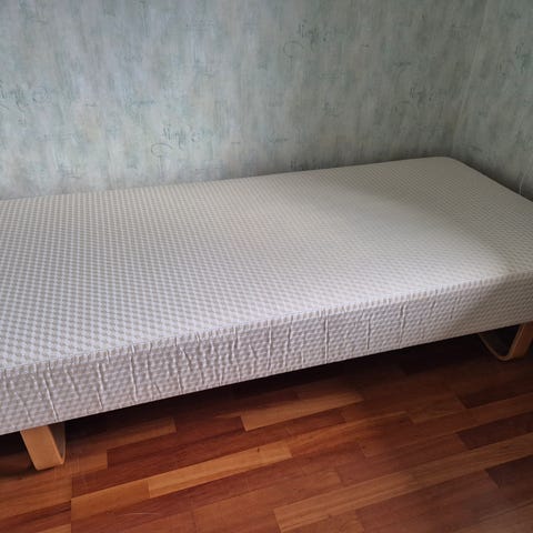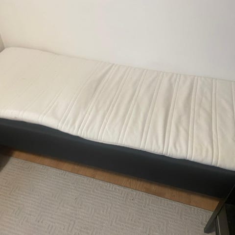 Bäddmadrassen har avtagbart överdrag med dragkedja.