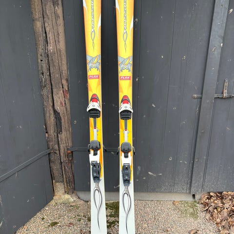 Rossignol Pursuit alpinskidor med integrerade bindningar. Bindningarna är monterade och anpassade för alpin pjäxa.