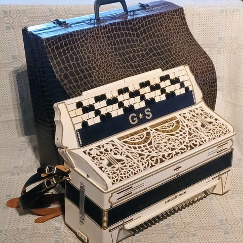 Ett genuint diatoniskt 144 bandoneon tillverkat i Tyskland på 1920-talet av märket ELA (Ernst Louis Arnold). Einheits system med en trekörig diskant (oktavstämt). Stämt och renoverat på 70-talet. Nu åter servat och stämjusterat. Läroböcker, noter och väska medföljer. Vikt 5,2 kg