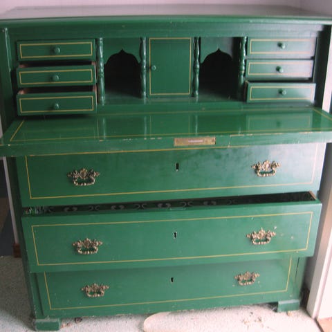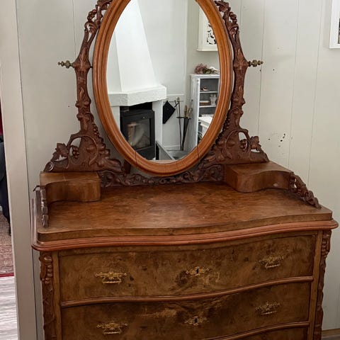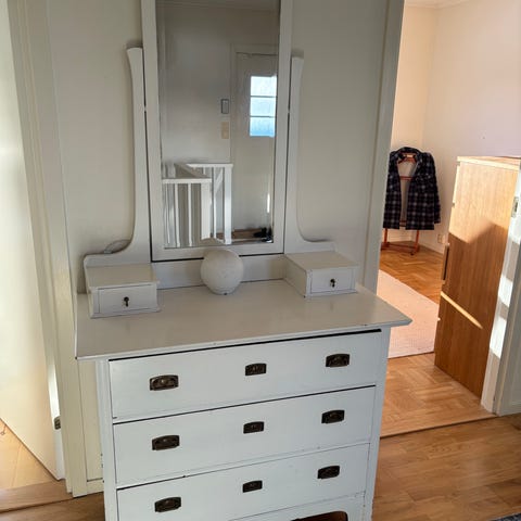 Byrå har lite skaft på ovansidan efter flyttfirma och något på sidan av spegeln
