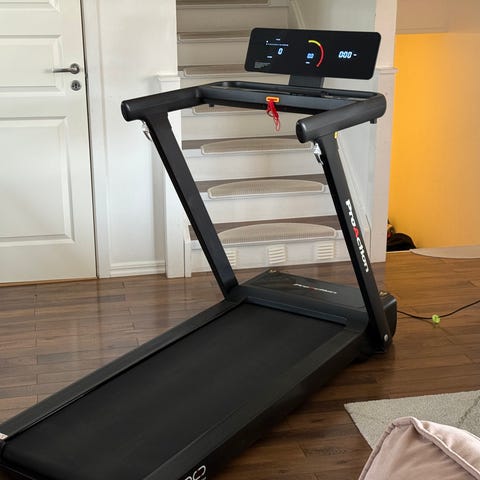 Mycket avancerat löpband med flera olika program, distans, fettförbränning, intervall, backträning mm. Längd: 211 cm, höjd: 142 cm, bredd: 91,5 cm, maxvikt: 150 kg. Instruktionsbok och gummimatta medföljer, nödstopp. Enkel att fälla upp, har hjul som gör det lätt att flytta. Tar lite plats, mycket stabilt, fint skick, sparsamt använt.