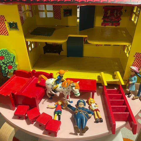 Pippi Långstrump Villa Villekulla dockhus som passar barn från 3 års ålder. Figurer/ möbler på bilden ingår. Dessa är ganska slitna. Figurer/ möbler finns även att köpa separat i butik.
