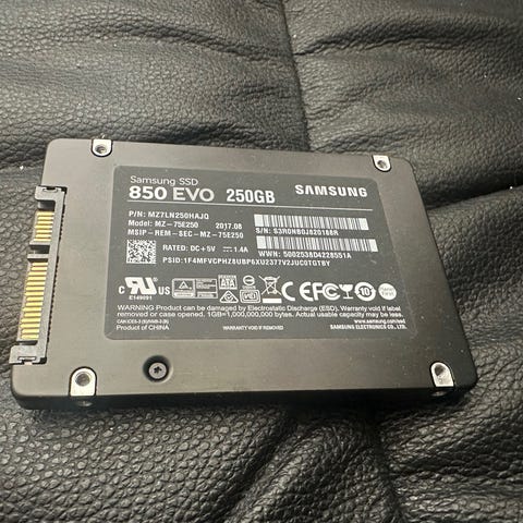 Samsung 850 EVO SSD med kapacitet på 250 GB.