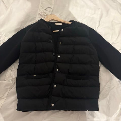 Moncler dunväst för dam i storlek XS, (00) Västen är svart och fylld med dun enligt märkning. Klassisk quiltad modell med hög krage och dragkedja framtill. Moncler-logotyp på bröstet samt inneretiketter med serietryck och DIST-märkning. Passar som ytterplagg eller som mellanlager vid kallare väder.
