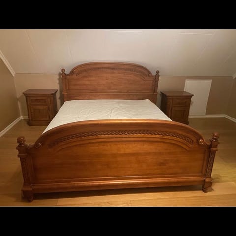 • Säng: Vit dubbelsäng i konstläder med madrass (i gott skick).